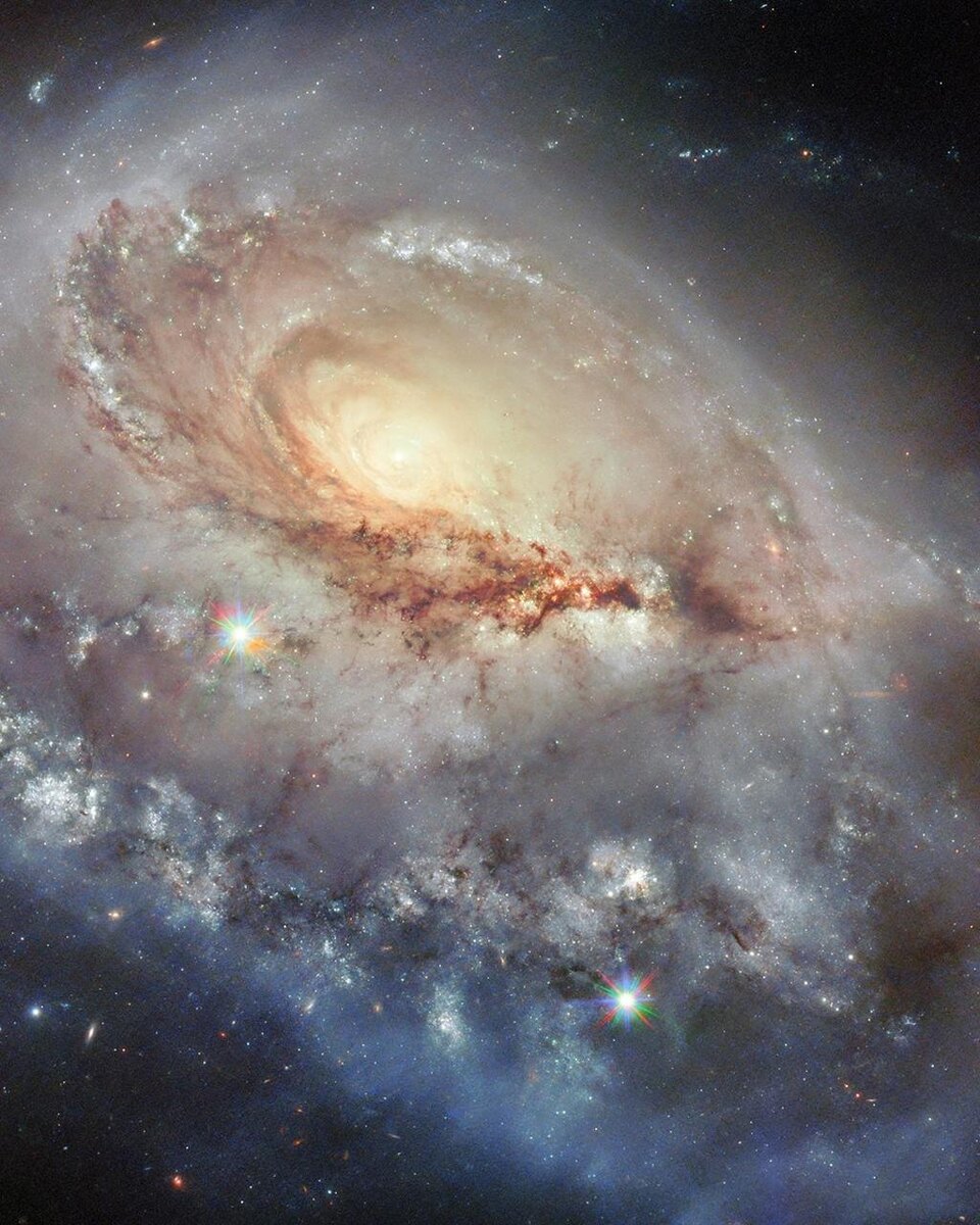 Arp 184 (NGC 1961): асимметричная спираль с загадочным прошлым Эта необычная спиральная галактика, расположенная в 190 миллионах световых лет в созвездии Жирафа, представляет собой яркий пример космической асимметрии. Включённая в 1966 году в знаменитый Атлас пекулярных галактик Халтона Арпа под номером 184, она демонстрирует уникальную морфологию, которая ставит перед астрономами интригующие вопросы. Ключевые особенности: Односторонняя спиральная структура: Лишь один массивный, усыпанный звёздами рукав обращён в сторону наблюдателя, тогда как противоположная сторона галактики выглядит значительно беднее Приливные следы: На изображении видны тонкие газопылевые "мосты", возможно свидетельствующие о прошлом взаимодействии с соседней галактикой Активное ядро: Галактика классифицируется как LINER-тип (Low-Ionization Nuclear Emission-line Region), что указывает на наличие слабой активности центральной чёрной дыры