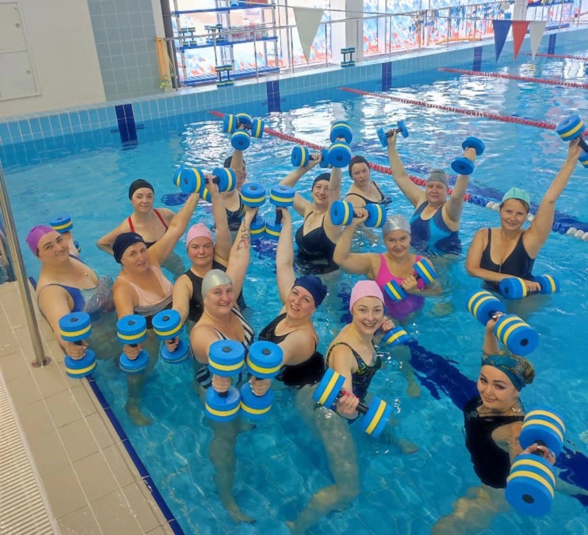 ✨ Наши новости! 21 июля участники программы «Аквааэробика» в бассейне «Русский медведь» приняли участие в плавательном флешмобе «Россия