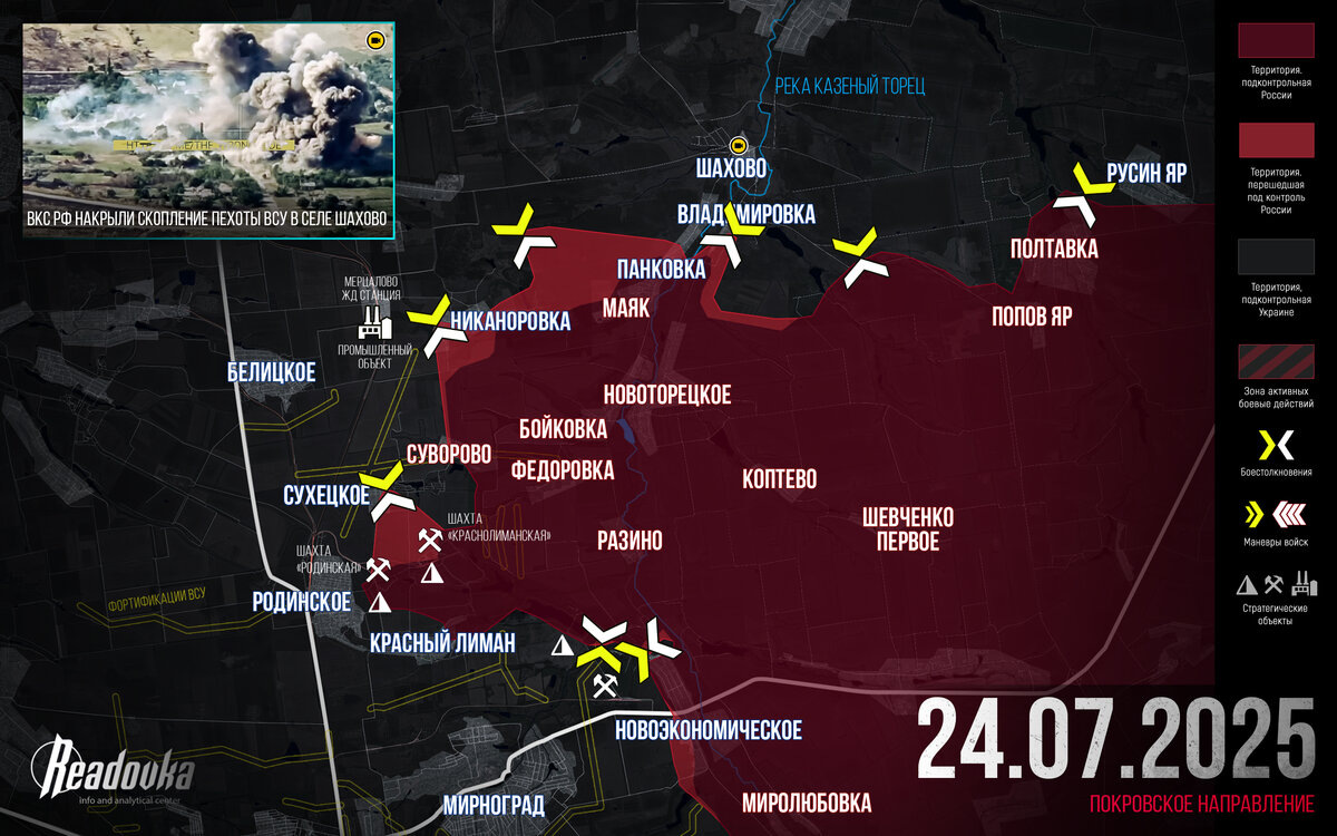 В качестве послесловия важно добавить, что украинский президент изначально пошел в атаку на НАБУ и САП, опасаясь, что разработка его приближенных – это пролог к его устранению с политической арены для дальнейшего ввода в игру экс-главкома ВСУ Залужного. Однако, как показывает развитие событий, попытка отсрочить неизбежное только приблизила кульминацию кризиса собственной власти, запустив «механизмы Майдана», которые, возможно, уже необратимы. Вчера, 23 июля, главным событием дня стало расширение зоны контроля ВС РФ на участке прорыва в городскую черту Покровска.