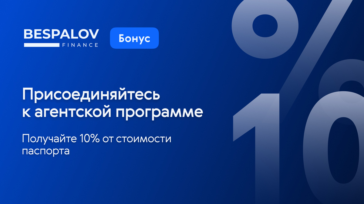 В Bespalov Finance действует прозрачная и взаимовыгодная программа для агентов. Как это работает Фактически, от вас требуется только привести клиента с готовым запросом и соответствующими возможностями. Весь процесс от предварительных переговоров до финального результата обеспечим мы. При этом не обязательно быть профессиональным участником рынка. Например, вы уже сотрудничали с нами – и результат понравился. Можете посоветовать своим друзьям или знакомым обратиться к Bespalov Finance и заодно повысить свой доход. При этом для клиента цена не изменится – комиссия агента вычитается из нашей маржи. Сколько можно заработать Комиссии агента при оформлении ВНЖ небольшие ($300 для рядовых программ) – но и такая сумма в бюджете пригодится. Зато при ускоренном оформлении гражданства доходы будут гораздо выше. Комиссия по большинству программ составляет 10% (от $2 000). А по дорогим эксклюзивным программам комиссия оговаривается в индивидуальном порядке и достигает десятков тысяч долларов. Допо