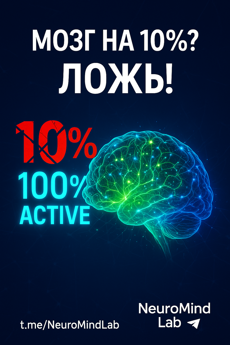 🔁 А вам встречался миф про 10%? Где? Поделитесь в комментариях! Какой научный миф о мозге раздражает вас больше всего? 💡 Хотите глубже погрузиться в тему? Полная версия разбора мифа с ссылками на исследования — здесь. 🔔 Подписывайтесь на NeuroMind Lab в Telegram! Только проверенная наука, только практическая польза. Ваш мозг достоин правды! #
