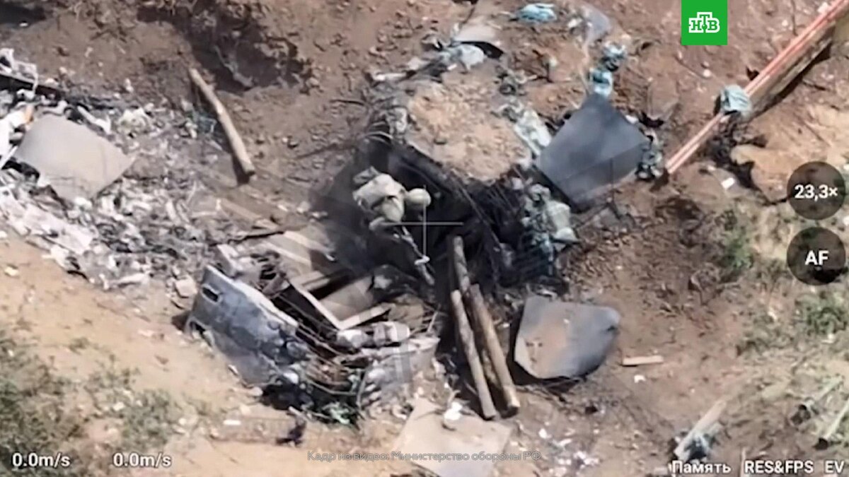 [ Смотреть видео на сайте НТВ ] Минобороны опубликовало кадры поражения долговременной огневой точки (ДОТ) с личным составом ВСУ расчетом FPV-дронов «Рубикон». Как сообщили в Минобороны, подразделение разведки на Александро-Калиновском в ДНР обнаружило перемещение группы пехоты противника в опорном пункте. Дождавшись момента скопления личного состава украинских националистов, расчет FPV-дронов центра «Рубикон» точным попаданием разрушил занятый противником блиндаж. Через некоторое время выжившие украинские боевики попытались переместиться из разрушенного блиндажа в соседнее бетонное фортификационное сооружение, отмечается в сообщении. Но расчет FPV-дронов серией ударов поразил укрытие противника, разрушив вход. Как подчеркнули в Минобороны, это способствовало успешному продвижению наших штурмовых групп на данном участке. Ранее расчетом FPV-дрона был уничтожен пикап ВСУ, замаскированный в лесополосе в Харьковской области. Кроме того, российские военные взяли под контроль еще два населен