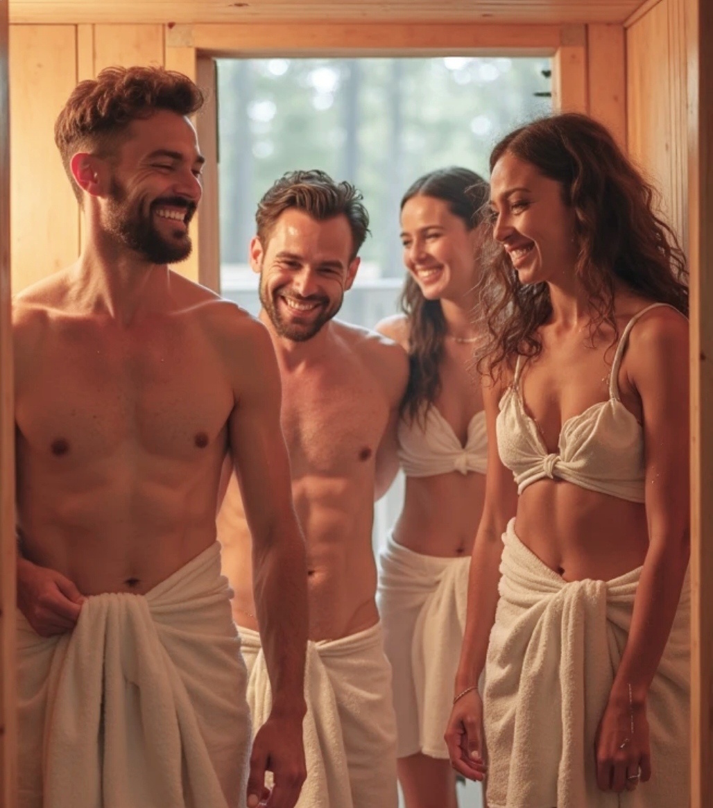 Моя подруга Соня всегда славилась нестандартными идеями. Но когда она пригласила меня на «банную вечеринку», где парни и девушки парились вместе, я сначала подумала, что она шутит. — Ты серьёзно? Это же как… совсем без границ? — удивилась я. Соня только засмеялась: — А что такого? Это же просто баня, расслабление и общение. Ничего пошлого, только атмосфера и кайф. Я согласилась — больше из любопытства, чем из уверенности. И вот я стою перед дверью загородного дома, где собралась компания из десяти человек: пять девушек и пять парней. Все уже переоделись в просторные халаты, смеялись и разливали травяной чай. Когда мы зашли в парную, я сначала смутилась. Сидеть почти без ничего рядом с малознакомыми людьми — это не привычный для меня формат. Но атмосфера была настолько лёгкой, что напряжение быстро ушло. — Эй, да ладно тебе краснеть! — подмигнул мне один из парней, Саша. — Здесь все свои. Соня бросила на каменку ароматные масла, и воздух наполнился запахом эвкалипта и мя