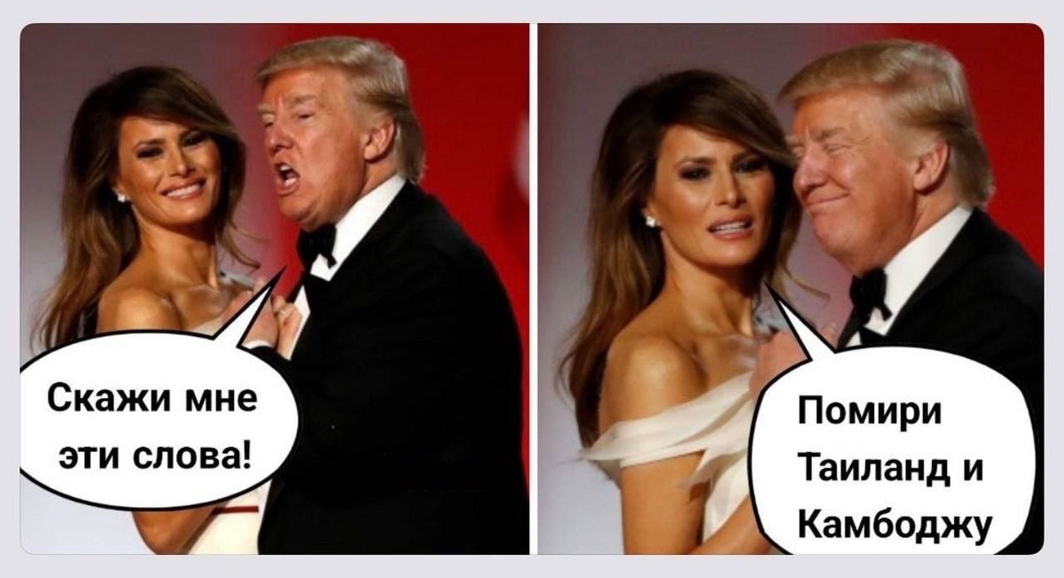 Я работаю над примирением Таиланда и Камбоджи - заявил президент США, а также по совместительству царь Галактики, владыка морей и океанов, смотрящий за всеми пляжными туалетами. „Ich arbeite an der Versöhnung zwischen Thailand und Kambodscha“, sagte der US-Präsident, der auch der König der Galaxis, der Herrscher der Meere und Ozeane und derjenige ist, der alle Strandtoiletten beaufsichtigt.