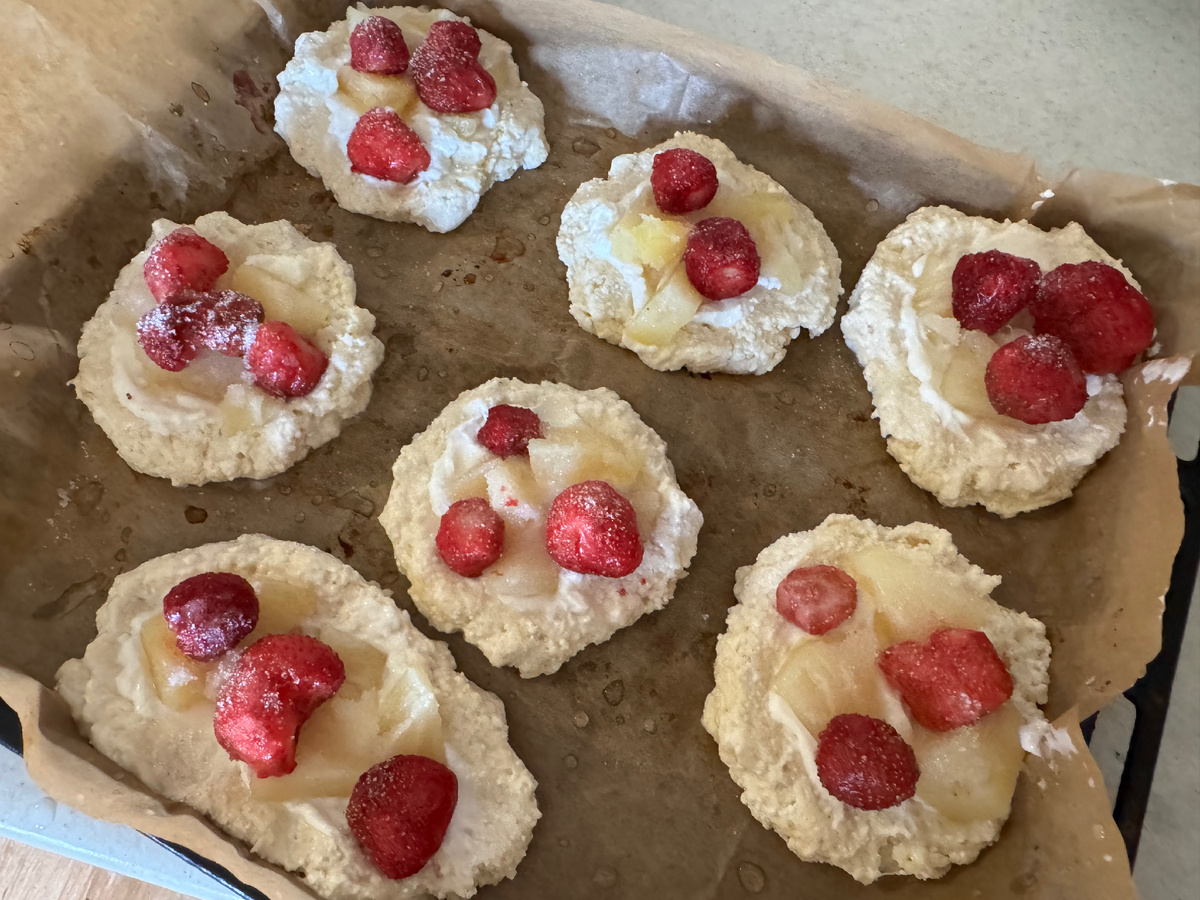 Ну, Вы поняли... Ватрушки творожные я сделала с клубникой и ананасами :-) Неплохо получилось, кстати.