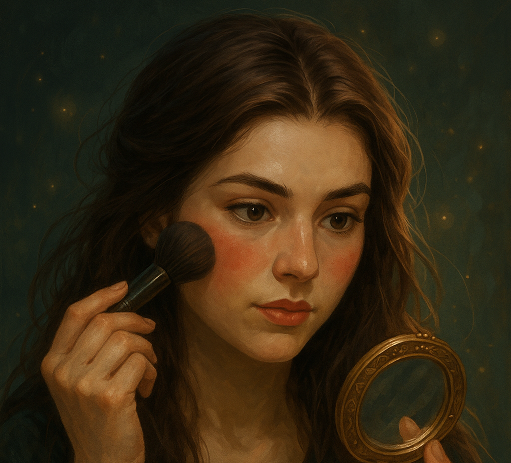 - Нанеси немного румян на правую скулу, с мыслями:
