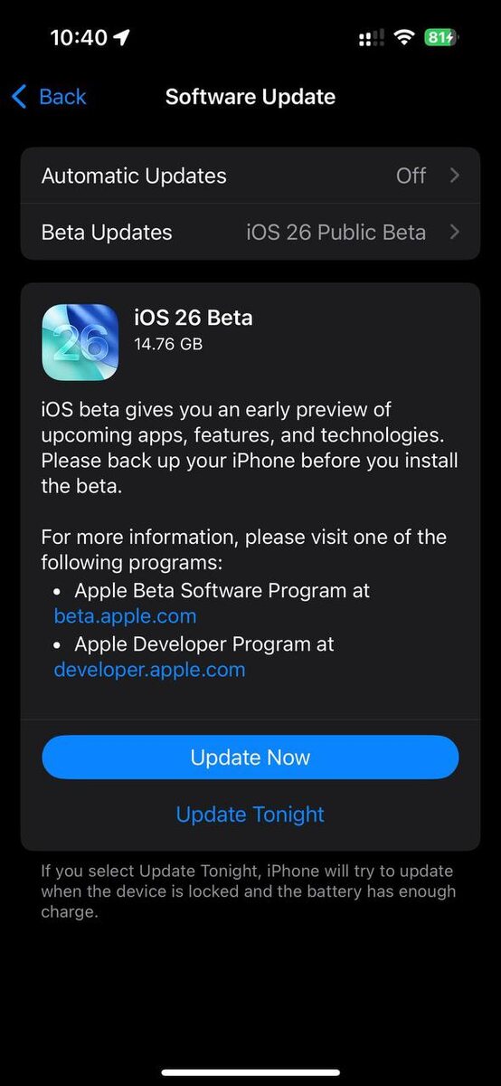 π Apple Π²ΡΠΏΡΡΡΠΈΠ»Π° iOS 26 Public Beta 1