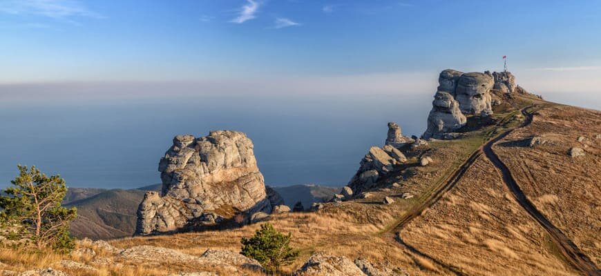 Та самая гора с Долиной Привидений. Горный массив, относящийся к Главной гряде Крымских гор. Природная достопримечательность, где есть сотни уникальных каменных глыб с причудливыми формами. Итак, что мы знаем об этой красотке? Что её высота достигает 1356 метров. Самой высокой вершиной является Северная Демерджи. Переводя с крымскотатарского языка, название горы означает «кузнец». Помимо основного названия, её так же величают Демерджи-яйла. Эта гора имеет свои отличительные особенности. В её составе есть не только известняк, как у многих других крымских гор, но и вкрапления гальки и других твёрдых пород. Свою известность она получила из-за потрясающих видов, открывающихся с вершины. Но это далеко не все её особенности. На склонах Южной Демерджи располагается одно из самых посещаемых мест Крыма – Долина Привидений. Это мистическое место, где находятся скалы и образования, напоминающие силуэты людей и животных. Самое удивительное, что все они сформировались в естественной среде, без вме
