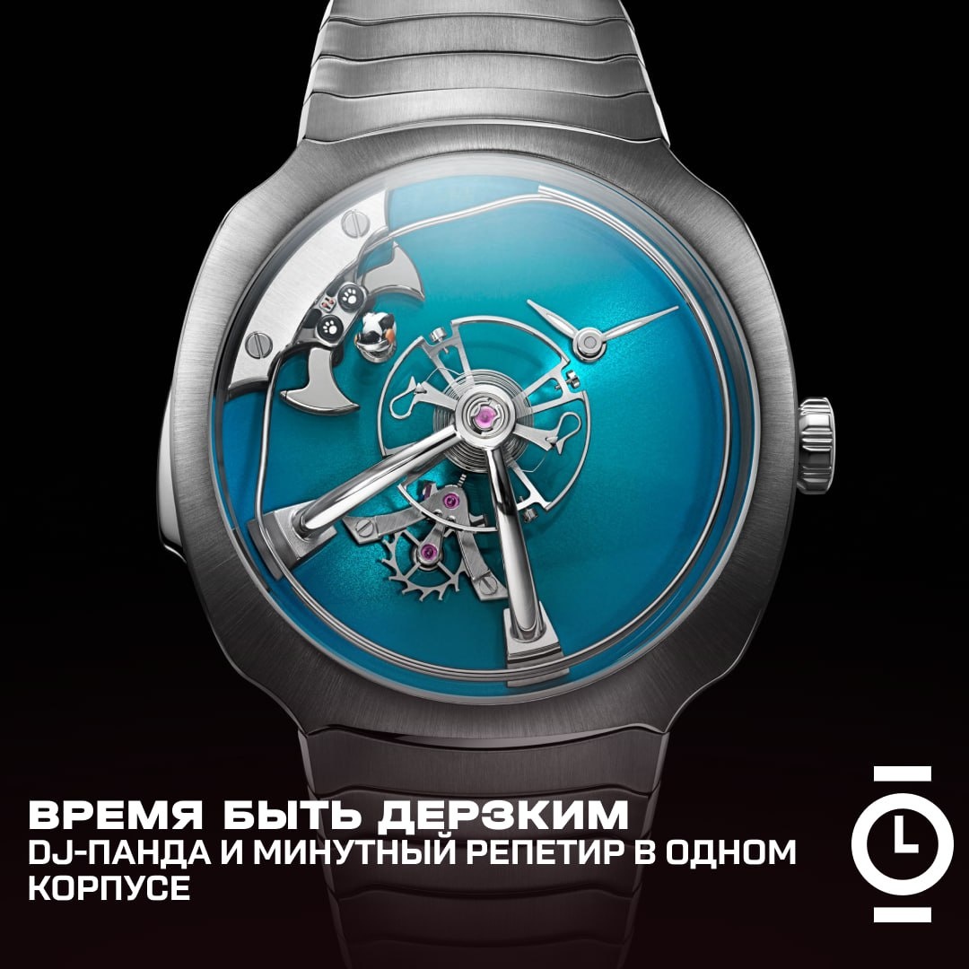 Особенность модели — уникальное размещение механизмов на циферблате. В левом верхнем углу — полностью открытый минутный репетир с молоточками, установленными в виде диджейского пульта. При активации репетира «вертушки» вращаются синхронно с боем молоточков. Управляет этим мини-диджеем — крошечная (5,35 мм) скульптура панды из белого золота с наушниками, вручную изготовленная и установленная на циферблате.