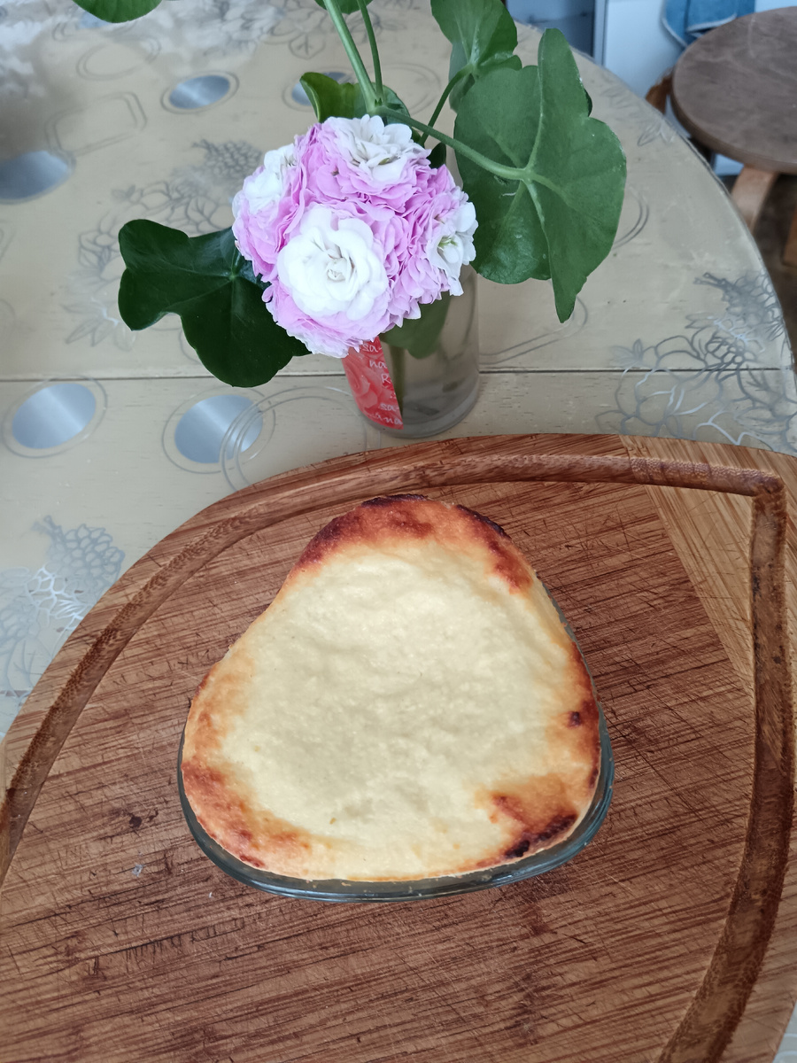 Какое-то время она остывала в форме. А потом мама просто перевернула её на тарелку, и запеканка сама из формы и выскочила.