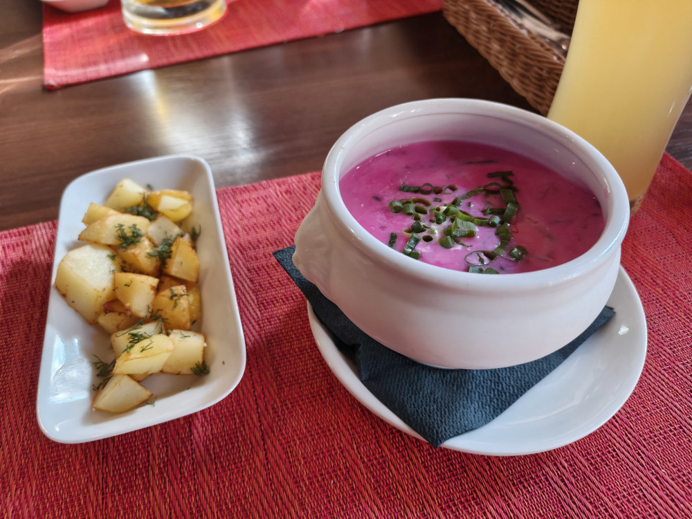 Сегодня про вкусное и красивое. В Черняховске мы едим в 99% случаев дома, у свекрови не забалуешь :) А вот в поездках по области можно и предаться разврату. Итак, погнали! В Балтийске наш однозначный фаворит — ресторан «Монте Кристо». Ходим мы в него с 2016 года, в принципе, там особо ничего и не изменилось. И наши вкусовые предпочтения тоже :) Литовский борщ, белорусские драники В этот раз я страдательно брала себе рыбные котлеты. Хорошо бы так страдать почаще :) Это, наверное, Цезарь Изменились только цены, гггг. Если в 21-м году я ругалась на счет в 3000 на четверых с мороженым, то теперь..... На второй день нам надоело ходить в «Монте-Кристо», хотели найти что-то попроще и подешевле, в результате зашли, кажется, в самый пафосный ресторан Балтийска Расположен он, правда, на тихой, параллельной центральной, улице, на первом этаже новой красивой гостиницы Проход через ресепшн, зал пустой. В «Монте-Кристо», кстати, мы тоже были единственными посетителями. Еще не сезон? Можно пообедать