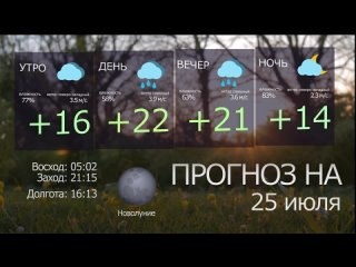 По данным Башгидромета, 25 июля на территории республики ожидается переменная облачность. Ночью местами, днем по республике кратковременные дожди, грозы. Ветер северный, северо-западный 5-10м/с, днем местами порывы до 17м/с. Температура воздуха ночью +12,+17°, днем +22,+27°. На отдельных участках дорог ночью и утром туман, видимость 500м и менее. Видео от Учалинская телерадиостудия «УчалыТВ» Источник https://uchaly102.ru/?p=93420