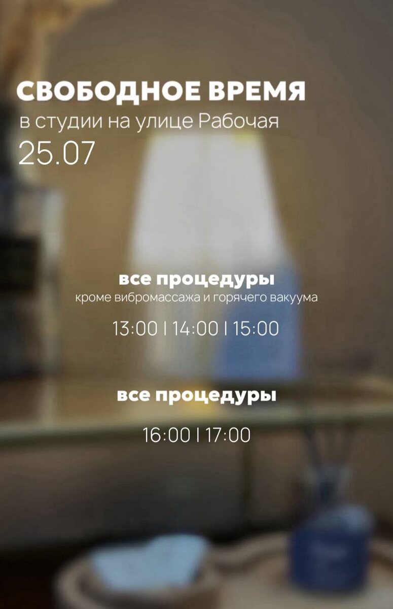 СВОБОДНОЕ ВРЕМЯ НА РАБОЧЕЙ 25.04 • ONLINE запись • WHATSAPP Ждём вас к нам на процедуры 🤍