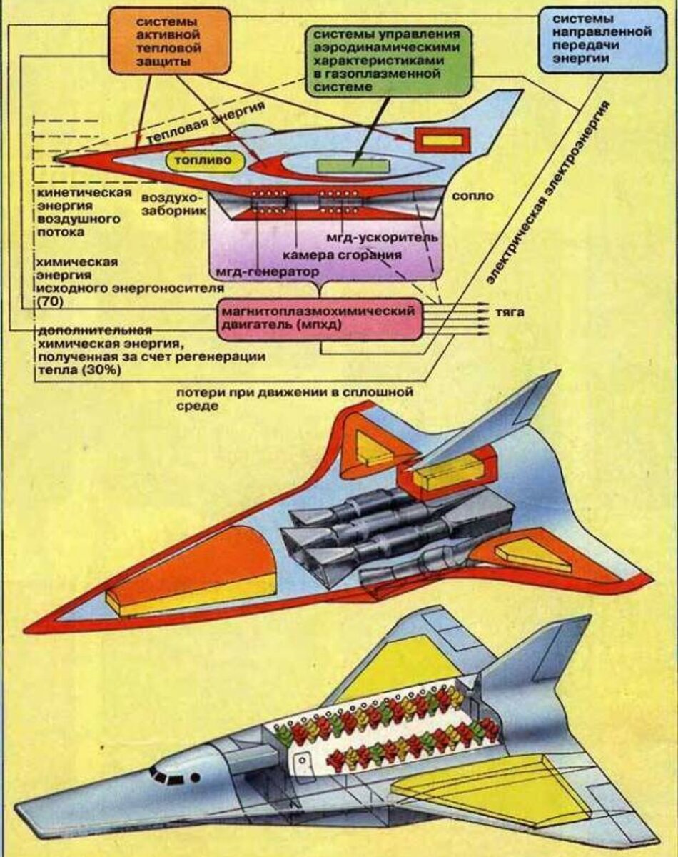 подсказал мне название проекта дипсик я его даже не смотрел, к идее пришёл много лет назад о чем есть публикации, но сейчас просто расскажу свою идею. вы наверно слышали об электротрансмиссии на транспорте? суть её проста. ДВС работает только с генератором, полученной энергией запитываются Тяговые Электро Двигатели. таким образом снимаются ограничения ДВС. схема имет лучшие характеристики в сравнении с механической трансмиссией. схема как на как на картинке. однако мне ближе идея классической компоновки - компрессор - турбина - сопловой аппарат. для относительно небольших скоростей (порядка 5 мах) нужно просто заменить компрессор на МГД нагнетатель, а турбину на МГД генератор. вот и получилось вместо связи компрессора и турбины механически по средствам вала, связь стала электрической, дополнительно заменили турбину на МГД генератор. единственно МГД генератор видимо стоит размешать не на месте турбины. работает это так: дело за малым придумать эффективный МГД канал. слабое место таког