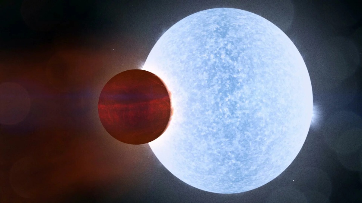 Речь идёт о планете KELT-9b, находящейся в 670 световых годах от Земли. Её называют одним из самых экстремальных мест во Вселенной, известных науке. ☀️ Настоящий космический ад Температура на её дневной стороне достигает около 4 300°C — это горячее, чем поверхность большинства звёзд! Представь себе: металл и камень не просто плавятся — они испаряются. Атмосфера планеты наполнена атомами железа и титана в газообразном состоянии. Ветер дует со скоростью до 10 000 км/ч, разрывая элементы на молекулы. 🔁 Она привязана к своей звезде Планета вращается синхронно: одной стороной она всегда обращена к звезде, словно в постоянном горении. Ночь на KELT-9b — это лишь понятие. Там почти нет шансов на охлаждение. Звезда, вокруг которой она вращается, — голубой гигант, невероятно горячая и агрессивная. ⏳ У неё нет шансов Учёные считают, что со временем звезда испарит всю атмосферу планеты, оставив после себя лишь голое ядро — если вообще хоть что-то останется. Это медленная смерть под по