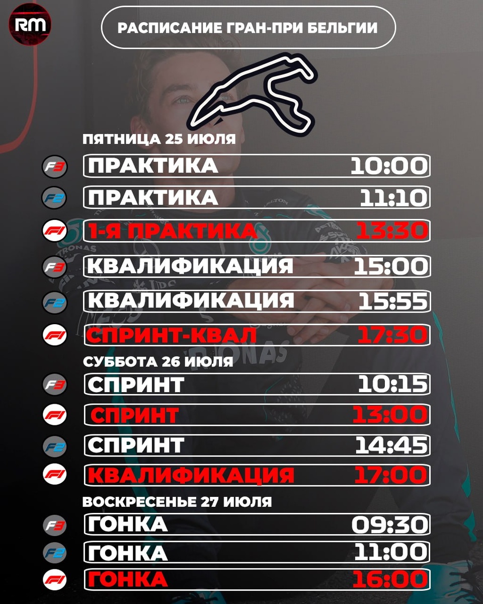 Расписание на уикенд (25.07-27.07) от Royal Motorsport. Время МСК