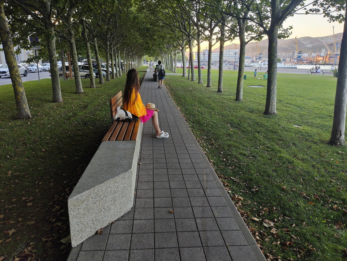 Аллея напротив морского вокзала Неудобно установлены лавочки, ноги сидящих мешают тем кто проходит мимо и наоборот. Широкие коляски вообще с трудом проходят. от подписчика