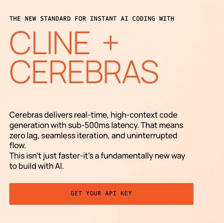 Cerebras (https://www.cerebras.ai/) подкинул бесплатный апи ключ - для всех (под VPN, авторизовывался через гитхаб аккаунт) Можно затестировать разные модельки и увидеть как быстро оно думает Думает быстро - да, а вот качество кода как то не очень :( Я побовал cline внутри vscode, там нужно будет в качестве "провайдера" выбрать cline, и указать модель, я пробовал qwen3-235b