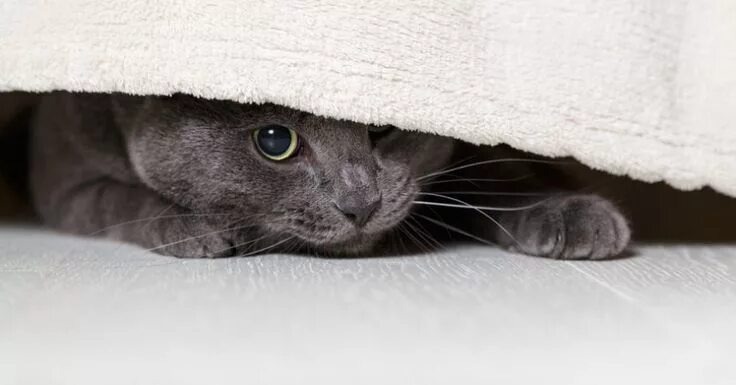 Кошка ищет безопасное место, реагируя на изменения давления или температуры.
