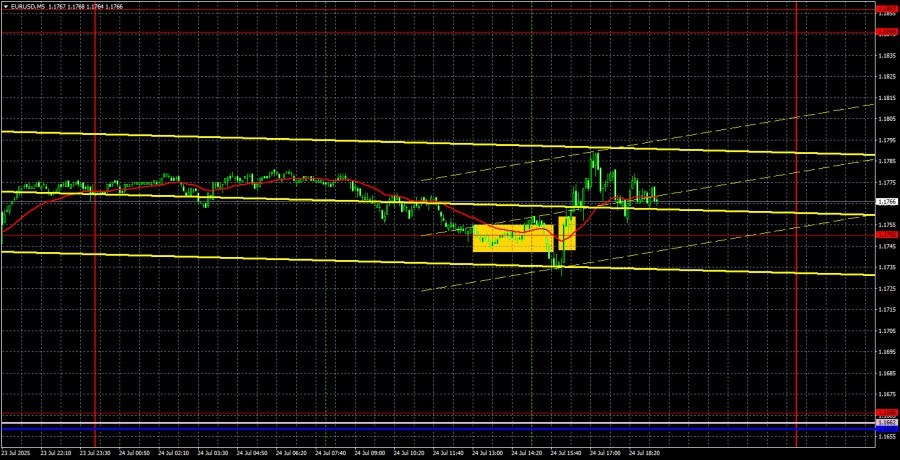 https://basechop.ru/wordpress/?p=50945 Анализ EUR/USD 5M. Валютная пара EUR/USD в течение четверга показала умопомрачительную волатильность и полное нежелание двигаться хотя бы в какую-то сторону. Многие трейдеры ждали от четверга активных движений, так как это был чуть ли не единственный день на этой неделе с макроэкономическими публикациями. Однако 6 индексов деловой активности в секторах услуг и производства Германии, ЕС и США не спровоцировали, по сути, никакой реакции рынка. Мы предупреждали вчера, что реакция может быть крайне слабой. Тоже самое касается и заседания ЕЦБ. Никаких важных решений принято не было, ставки остались без изменений. Рынку попросту не на что было реагировать. Конечно, небольшой всплеск эмоций последовал, но он абсолютно ни на что не повлиял, а общая волатильность дня составила 60 пунктов. С технической точки зрения, все красиво и закономерно. Пара продолжает уверенное и стабильное восходящее движение после того, как покинула нисходящий канал. Движение…