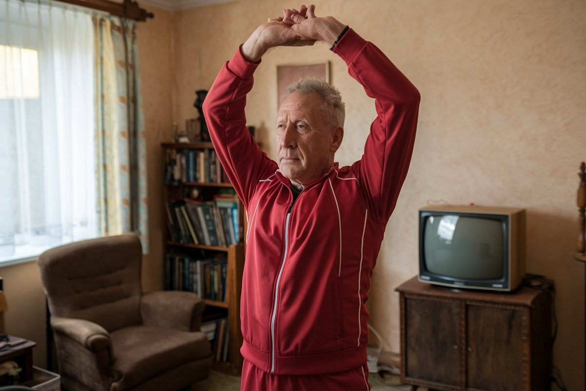 77 лет. Протезов — ноль. Артерий — все свои. Осанка — как линейка. Улыбка — как у Дудя после хорошего вопроса.