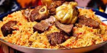 Ингредиенты: - 125 г риса - 100 г баранины - 50 г жира - 100 г моркови - 60 г репчатого лука - пряная смесь - соль Приготовление: В чугунном котле хорошенько разогрейте жир, положите туда целую очищенную луковицу и зачищенную косточку, обжарьте, после чего удалите их. Затем добавьте мелко порезанные кусочки мяса, нашинкованный лук и нарезанную соломкой морковь, всё вместе жарьте до золотистой корочки. Далее залейте водой, посолите, поперчите, добавьте зерна барбариса и зиры, варите на медленном огне. После этого выложите заранее замоченный рис ровным слоем поверх содержимого. Доведите блюдо до полной готовности на слабом огне под закрытой крышкой.