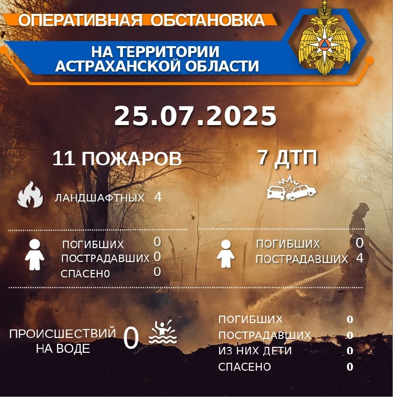🚨Оперативная обстановка на территории Астраханской области по состоянию на 00:00 25.07.2025