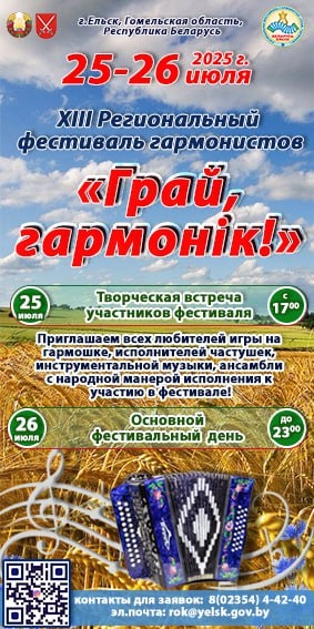 🎼 25-26 июля в Ельске пройдет XIII открытый региональный фестиваль гармонистов «Грай, гармонік!»