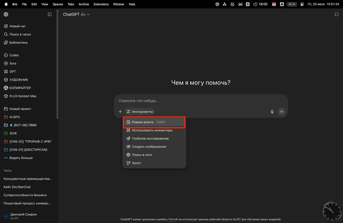 ChatGPT Agent теперь доступен подписчикам Plus и Team Раскатывали режим дольше чем обещали, ссылаясь на повышенный спрос. Попробовать агента можно в Tools>Agent mode, там же где Deep Research.
