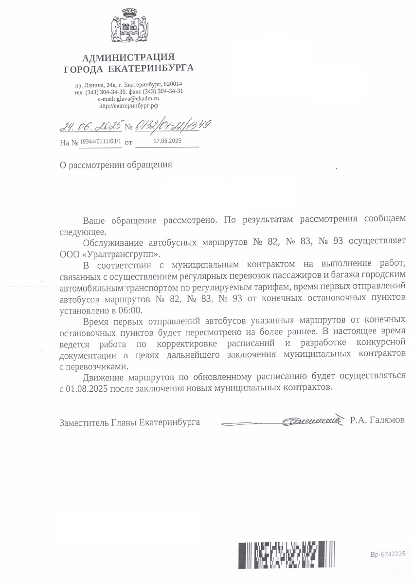 За весну и лето я передавал в администрацию Екатеринбурга несколько ходатайств от земляков, которые просили, чтобы автобусы выезжали на линии пораньше – до 6 утра. Местные власти откликнулись положительно. Скорректируют расписание не только маршрута № 83, о чем рассказывал ранее, а еще и № 82 и № 93.