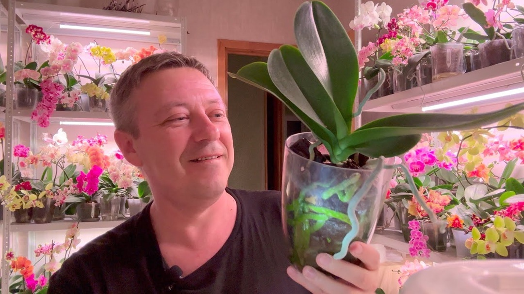 Друзья, всем привет! Сегодня у нас необычная тема — я хочу ответить на вопрос, который вы часто задаёте в комментариях: как я отношусь к выращиванию орхидей с открытыми корнями, то есть без грунта и горшков? Почему я не показываю этот способ на своём канале? Давайте разберёмся вместе! Ещё в 2017–2018 годах я проводил интересный проект с двумя орхидеями. Одна отращивала корни прямо в воде — целую бороду! А вторая, уценённая из магазина, была переведена на открытую корневую систему. Мы её распотрошили, и я даже спрашивал у вас, зрителей, как её посадить. Так она и стояла с открытыми корнями, а мы два года наблюдали, что с ней будет. Цель была простая: показать, что орхидеям не обязательно полностью просушивать корни. Ведь фаленопсисы — это эпифиты, воздушные растения, которым грунт, по большому счёту, и не нужен. За два года у этой орхидеи новые корни отрастали, старые засыхали — процесс шёл. Но знаете что? Для меня это оказалось жутко неудобно! Живу я в Волгограде, и наш климат — это от
