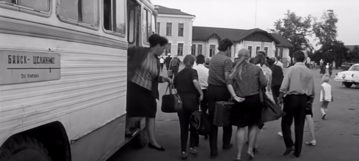 Посадку на поезд снимали на 🗺 Бийском автовокзале: герои прибывают автобусом ПАЗ-672, следующим по маршруту «Бийск—Целинное». Сейчас площадь перед вокзалом носит имя Шукшина