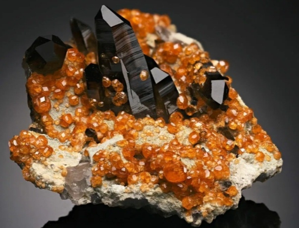 ...Солнечный гранат... ...Мандариновый гранат... Первая информация о гранатовый руде (первоначальное наименование спессартина) появилась в 1797, но и в ней не говорилось о точной дате открытия и первооткрывателе. 1823 - камень обнаружен в США и записан, как марганцевый гранат. В 1832 году руда уже приобрела название шпессарта (в последствии изменившемся из-за перевода; произошло от месторождения - горной местности Шпессарт), когда Франсуа Сюльпис Бёдан (5.09.1787, Париж - 10.12.1850, Париж; французский геолог и минералог, член Французской и Венгерской Академий Наук) впервые заметил минерал в Баварии и провёл его исследования (он же и предложил название). Спессартин имеет место и в народной легенде на библейский сюжет, в котором говорится о камне-гранате освещавшем в темноте путь Ною и его ковчегу во время Всемирного потопа. Камень встречается почти во всех уголках мира, но в каждом месте - свой определённый цвет. Хотя спессартин имеет насыщенный цвет, напоминающий солнце в разное в