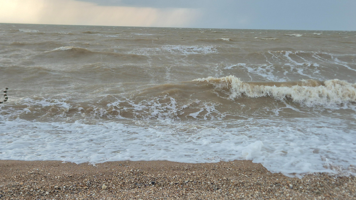 Шторм на Азовском море мы не видели ни разу, а вот приятное волнение, когда Азовское море шумит и гневается на ветер, возмущающий спокойную гладь, видим впервые!))