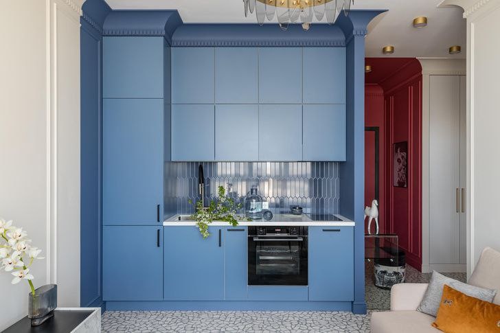 Мне нравится этот разбеленных черничных синий на кухне. Смотрится нетривиально. Дополняет его винный красный в прихожей, а остальные стены нейтральные цвета бедра, убегающей нимфы, бежеватые. Собственно эти нимфы в спальне на изголовье. Фреска "Love, live, laugh" в туалете - как эпиграф к дизайну (пер. англ. "люби, живи, смейся"). Дизайн Анастасия Меркулова ❤️ Трости и гвозди