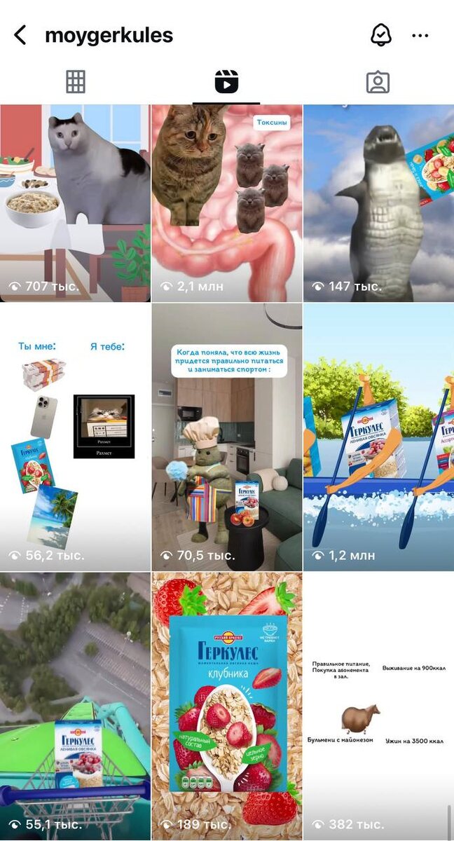 Девочки, каша геркулес врывается в тренды. Нет, это не псевдоним очередной блогерки. Речь про настоящие овсяные хлопья. В середине мая сммщики каши настолько преисполнились в своем познании, что начали делать кринжовые трендовые мемы с упаковкой «Геркулеса». Например, пачка каши уже занималась аура фармингом на носу лодки, делала всем «доброго утра» под треки модного рэпера Icegergerta и Lil Pump’а. А пользу геркулеса для пищеварения объясняли с помощью котиков. Ролики начали стабильно поднимать пользоваться настроение и залетать на 200-300 тысяч просмотров, некоторые на 1-2 млн. Чем-то напоминает креатив от «Соды» (ее аккаунт не ведут с 2022 года). В комментах также сравнивают с творчеством сотрудников Авиасейлс. И только самые прошаренные эксперты заметят, что подобный кринж последние месяцы исполняют и диджитал-эксперты Белого дома.