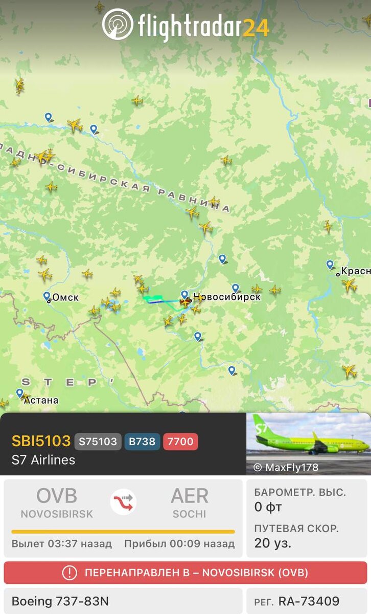 Некая ситуация случилась на борту самолета Boeing 737 авиакомпании S7, в результате чего он возвращается в Новосибирск