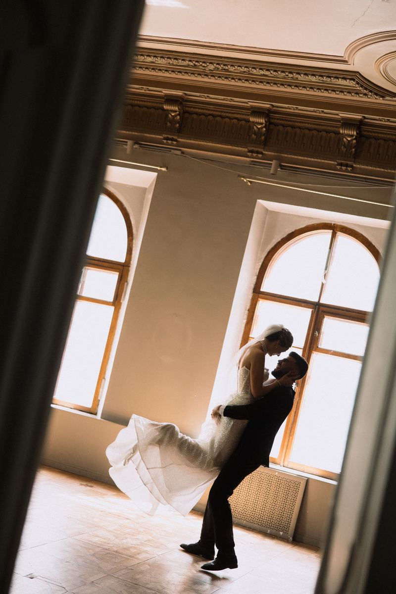 Церемония в этот день была в ЗАГСе, а фотосессия — в драпированной фотозоне, такой же мягкой и светлой, как всё остальное. Мустафа был единственным иностранцем на этом празднике, потому что торжество в Египте у пары ещё впереди — в ноябре. А здесь, в Москве, в камерном зале бутик-отеля Чехов, состоялся почти семейный ужин — на нём были только самые близкие и родные. И всё было так, как хотели Катя и Мустафа: тихо, красиво и с лёгким морским дыханием в деталях. Вёл вечер Артём Борисов. Он не говорил по-английски, но ради