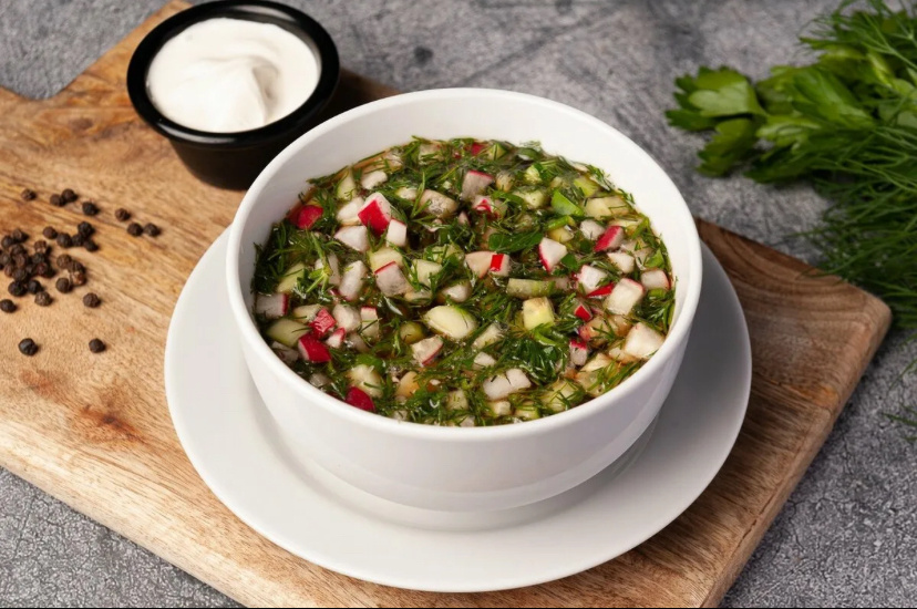 Вот простой и вкусный рецепт окрошки, который подойдет для летнего дня: ▎Ингредиенты: • 4-5 картофелин (отварных) • 3-4 яйца (вареных) • 300 г колбасы или куриного филе (по желанию) • 1 огурец (свежий) • 4-5 редисок • 1-2 зелёных лука • Пучок укропа или петрушки • 1 литр кефира или кваса (по вкусу) • Соль, перец по вкусу • Горчица (по желанию) ▎Приготовление: 1. Подготовка овощей: Отварите картофель в мундире, остудите и нарежьте кубиками. Яйца тоже отварите, остудите и нарежьте. 2. Нарезка ингредиентов: Колбасу или куриное филе нарежьте кубиками. Огурец и редиску нарежьте тонкими кружочками или кубиками. Зелёный лук и укроп мелко порежьте. 3. Смешивание: В большой миске смешайте все нарезанные ингредиенты: картофель, яйца, колбасу (или курицу), огурцы, редиску и зелень. 4. Заправка: В отдельной ёмкости смешайте кефир или квас с горчицей (если используете). Добавьте соль и перец по вкусу. 5. Подача: Залейте овощи заправкой и перемешайте. Окрошку можно подавать сразу, но лучше дать