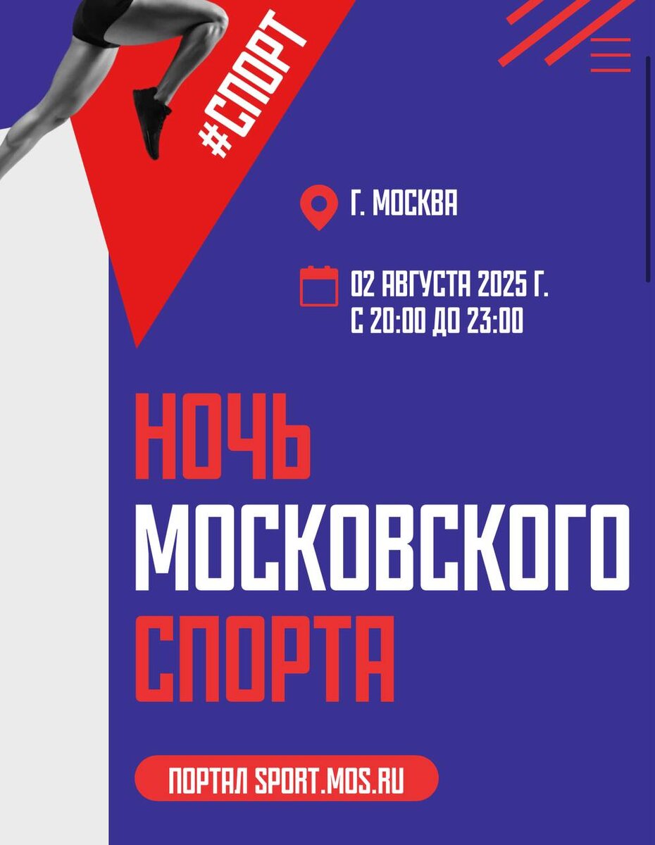 🆓 Ночь московского спорта! 🗓️2 августа с 20:00 до 23:00 Самая спортивная ночь года! 🔸21 локация 🔸24 вида спорта 🔸100 тренировок 🔸300 000 участников Город засыпает, а любители и профессиональные спортсмены просыпаются, чтобы проявить свою силу, выносливость и командный дух. Будьте активны, пробуйте новые занятия и вдохновляйтесь победами, чтобы запомнить эту спортивную ночь надолго! Бесплатно, некоторые события по регистрации Подробнее ЗДЕСЬ @Together_with_kids Пост носит информационный характер