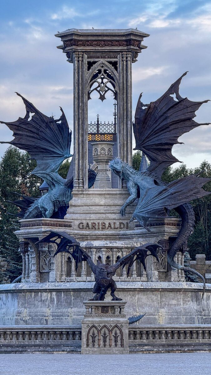 Замок Гарибальди Представьте: обычное русское село, поля, деревенские дома… и вдруг посреди этого — замок из средневековой Европы. Будто кто-то сбросил его с небес, чтобы напомнить нам, что сказки бывают настоящими. Это замок Гарибальди в Хрящёвке, недалеко от Тольятти. На самом деле он не старинный — его продолжают строить и украшать, но от этого он только интереснее. Каждый раз, приезжая сюда, я нахожу новые детали. В этом году появились грифоны — и на фасаде, и возле окон, их легко заметить по свежей штукатурке. Я люблю наблюдать, как он меняется: добавляются новые элементы, разрастается территория, а место словно оживает. Если повезёт с погодой, можно встретить закат — и тогда замок окрашивается золотыми оттенками, превращая обычный вечер в магию.