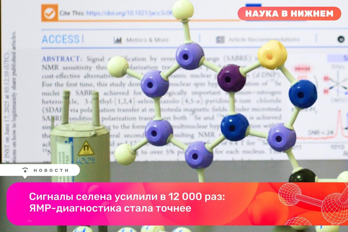 Но есть элементы, сигналы от которых ЯМР улавливает с большим трудом. Один из них — селен-77. Он встречается в биологически активных веществах, в том числе с противоопухолевым потенциалом. Но его сигнал настолько слаб, что обычный ЯМР часто просто не замечает его.