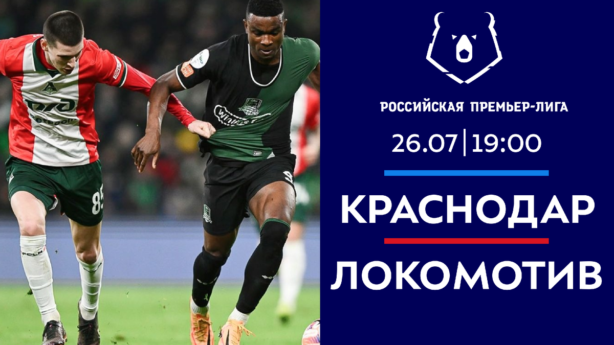 Во втором туре чемпионата России по футболу сезона-2025/2026 сыграют между собой «Краснодар» и «Локомотив». Букмекеры считают фаворитами в этом матче хозяев поля, выставляя на победу подопечных Мурада Мусаева коэффициент 1,96 (БК «Фонбет»). Трансляция встречи будет доступна 26 июля в 19:00 (мск) на «Матч ТВ». Очные игры Из последних 5 матчей между этими соперниками сразу три завершились ничейным исходом. В прошлом сезоне «Краснодар» добился уверенного триумфа на выезде – 3:0, тогда как в родных стенах не смог распечатать ворота противника – 0:0. «Краснодар» Два сезона подряд подшефные Мусаева принимали самое активное участие в чемпионской гонке. В предыдущем розыгрыше Премьер-лиги они финишировали на первом месте. В заключительном туре была добыта ключевая победа над московскими динамовцами – 3:0. В межсезонье команда провела только 2 контрольных встречи – победила в результативном стиле «Динамо» Махачкала и «Ростов» – 4:1 и 4:2 соответственно. Если вести речь о составе, то помимо браз