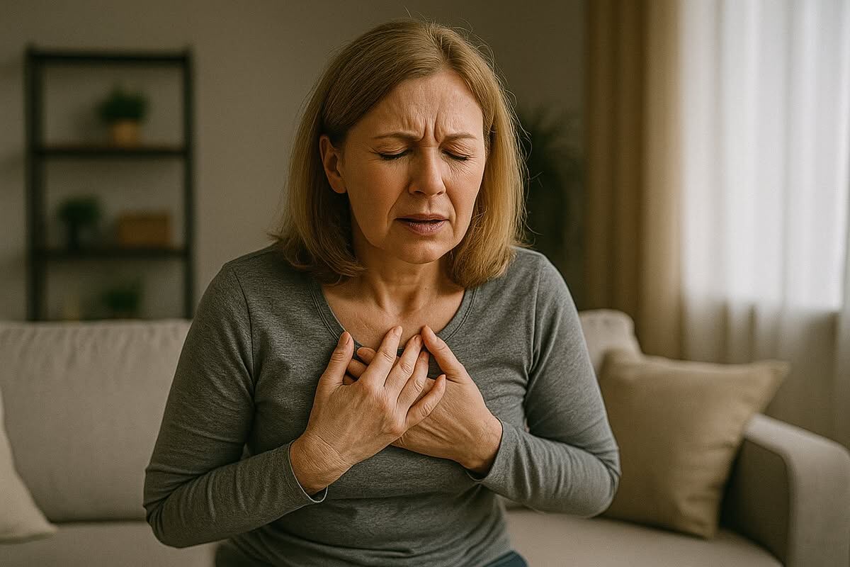 Паническая атака часто проявляется как сильное сердцебиение, сжатие в груди, нехватка воздуха. Важно исключить кардиологическую патологию у врача. Если сердце в порядке, а симптомы возвращаются — вероятнее всего, это ПА. Также для паники характерны страх смерти, дереализация, потливость, дрожь и ощущение «вот-вот что-то случится».