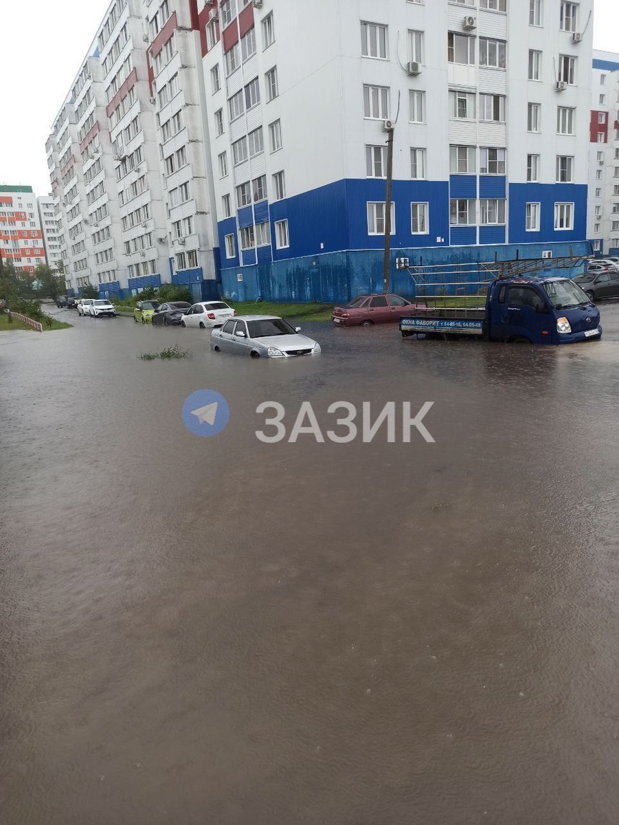 Фото прислал наш подписчик. Вода топит двор, а одну машину почти полностью уже скрыло.