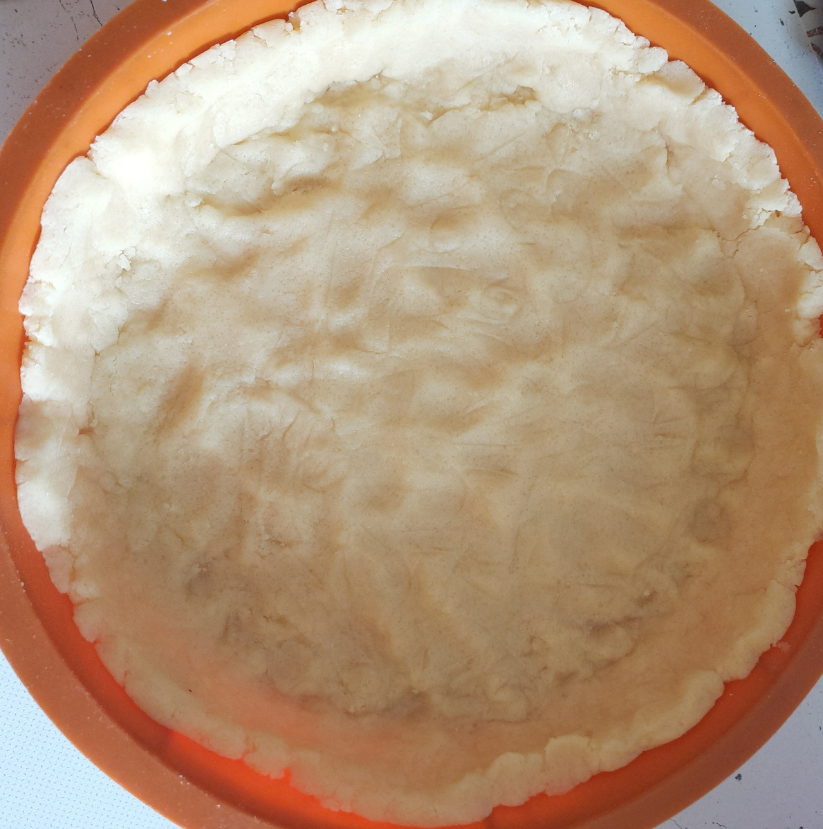 Этот рецепт изначально был рассчитан на яблочную начинку. Яблоки отлично держат форму, не растекаются, но дают немного сочности. Потом люди стали в этот вариант пирога добавлять и другие ягоды. В том числе замороженные. Получается вкусно! Готовлю песочное тесто в соотношении 3:2:1. Так как тут не нужно посыпать сверху начинку, то теста нужно чуть меньше. Но бортики стоит сделать чуть побольше и повыше, чем на простом пироге с клубникой. Делаю по весам. 270г муки, 180г сливочного масла, 90г сахара. Масло нужно заранее достать, чтобы оно при комнатной температуре стало мягким. Смешать все вместе. Я еще щепотку соли добавляю для баланса вкусов. Убираю в морозилку на 7-10 минут. Тесто пластичное и рыхлое. Нижний слой прямо в силиконовой форме руками вылепливаю, чтобы закрыть дно тестом. Выкладываю на тесто клубнику. Делаю сметанную заливку. 1 банка сметаны 20% жирности 200г, 1 яйцо и 95г сахара. Все перемешать. Так как ягода будет очень сочная, то еще стоит добавить ложку крахмала и перем