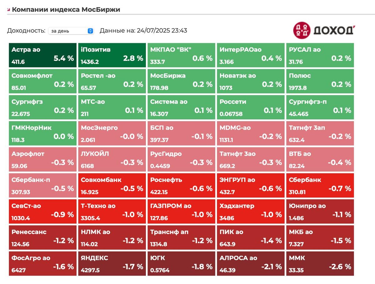 РФ рынок: что нас ждет сегодня В четверг индекс мосбиржи упал на 0,5% до 2815 пунктов. Юань вырос на 0,92% до 11,045. Нефть выросла на 1% до $69,2. Ставка: чего ждать Уже сегодня в 13:30 ЦБ объявит решение по ключевой ставке. Консенсус закладывает снижение на 2%. ВТБ и процентные свопы закладывают 17%. Это в целом не так важно, важнее будет сигнал + дальнейшая траектория ДКП. На остаток год диапазон ставки снизят, поскольку инфляция во 2кв шла существенно ниже прогноза (5% vs 7%), в 3кв инфляция пока идет ниже 4% (если корректировать на автономный фактор индексации коммуналки)+ экономика охлаждается быстрее прогнозов. И если в апрельском прогнозе минимальная ставка была 18%, то сейчас может быть 14-15%. А это быстрее ожиданий рынок. Из ликвидности деньги вообще не выходили, из депозитов тоже не было каких-то значимых притоков. Сидеть в ликвидности при сильном падении ставки будет уже не так интересно => приток в реальные активы (акции/валюту), также в облиги. ОФЗ с погашением чер