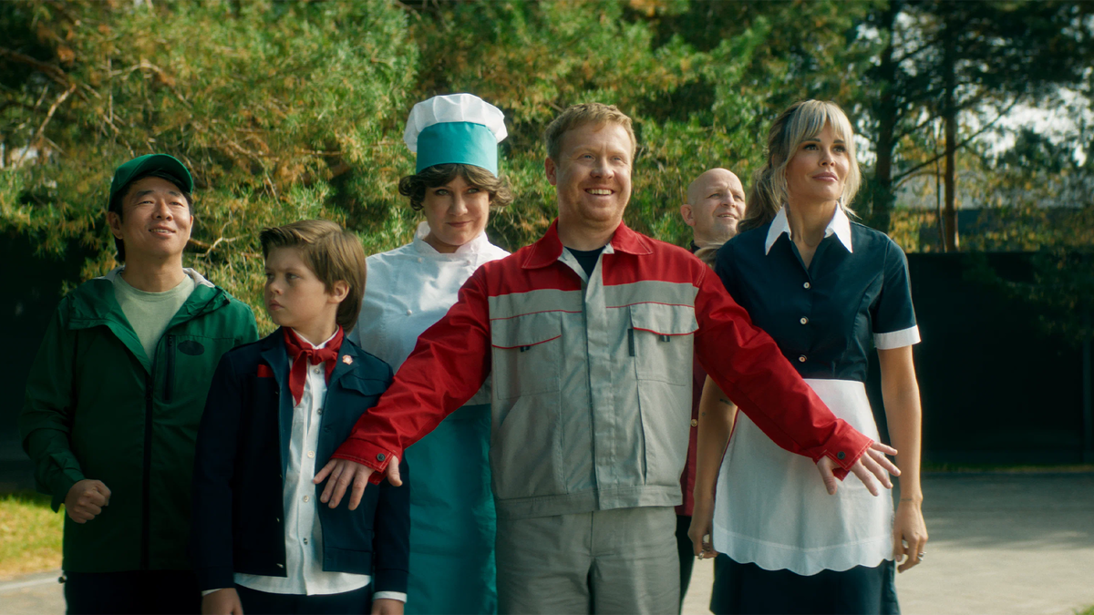 По персонажам, кстати, тут всё так себе. Более-менее в образ попадает только Фёдор Лавров. Ну, персонажей 90-х играть ему не привыкать, всё-таки сам образ актёра обязывает, а тут это просто карикатура, так что получилось забавно. Ольга Тумайкина — харизматичная актриса, но играть ей тут особо нечего. Кстати, её персонаж получил переосмысление. Теперь ругать и шутить над тёщей не принято, поэтому в свой мир она не вернулась. Женщина заслуживает любовь и счастье. Намекают ли нам авторы, что анекдотам нужно переосмысление? Возможно.