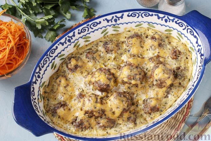 Мясные фрикадельки, запечённые в сливочно-сырном соусе. Мясные фрикадельки – очень удобное мясное блюдо, с которым сочетается любой гарнир. Предлагаю разнообразить это блюдо, добавив в состав фрикаделек овсяные хлопья, и запечь их в сливочно-сырном соусе с пряностями. Фрикадельки получаются очень нежными и ароматными.
