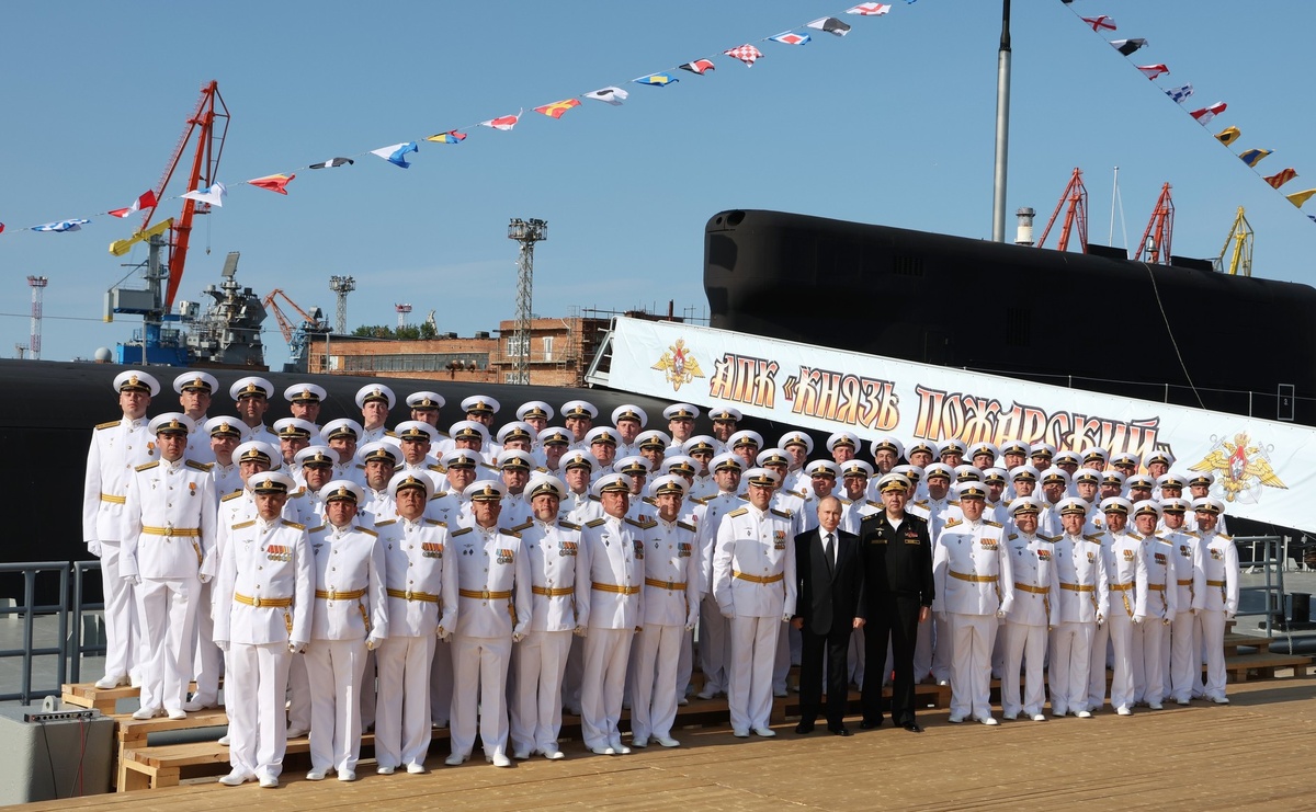 В Северодвинске на заводе ОСК «Севмаш» Владимир Путин принял участие в торжественной церемонии подъема военно-морского флага на атомном подводном крейсере «Князь Пожарский», поступающем в состав Военно-Морского Флота, сообщается на сайте Президента России. На церемонии также присутствовали Первый заместитель Председателя Правительства Денис Мантуров, помощник Президента Алексей Дюмин, помощник Президента Николай Патрушев, главнокомандующий Военно-Морским Флотом Александр Моисеев и губернатор Архангельской области Александр Цыбульский. Крейсер «Князь Пожарский» – корабль проекта «Борей-А» четвертого поколения атомоходов. Подлодка оснащена современными комплексами ракетного и торпедного оружия, навигации, радиотехнического и гидроакустического вооружения, обладает высокими маневренными характеристиками и акустической малозаметностью. Выступление на торжественной церемонии подъема военно-морского флага на атомном подводном крейсере «Князь Пожарский» Президент России Владимир Путин: Уважае